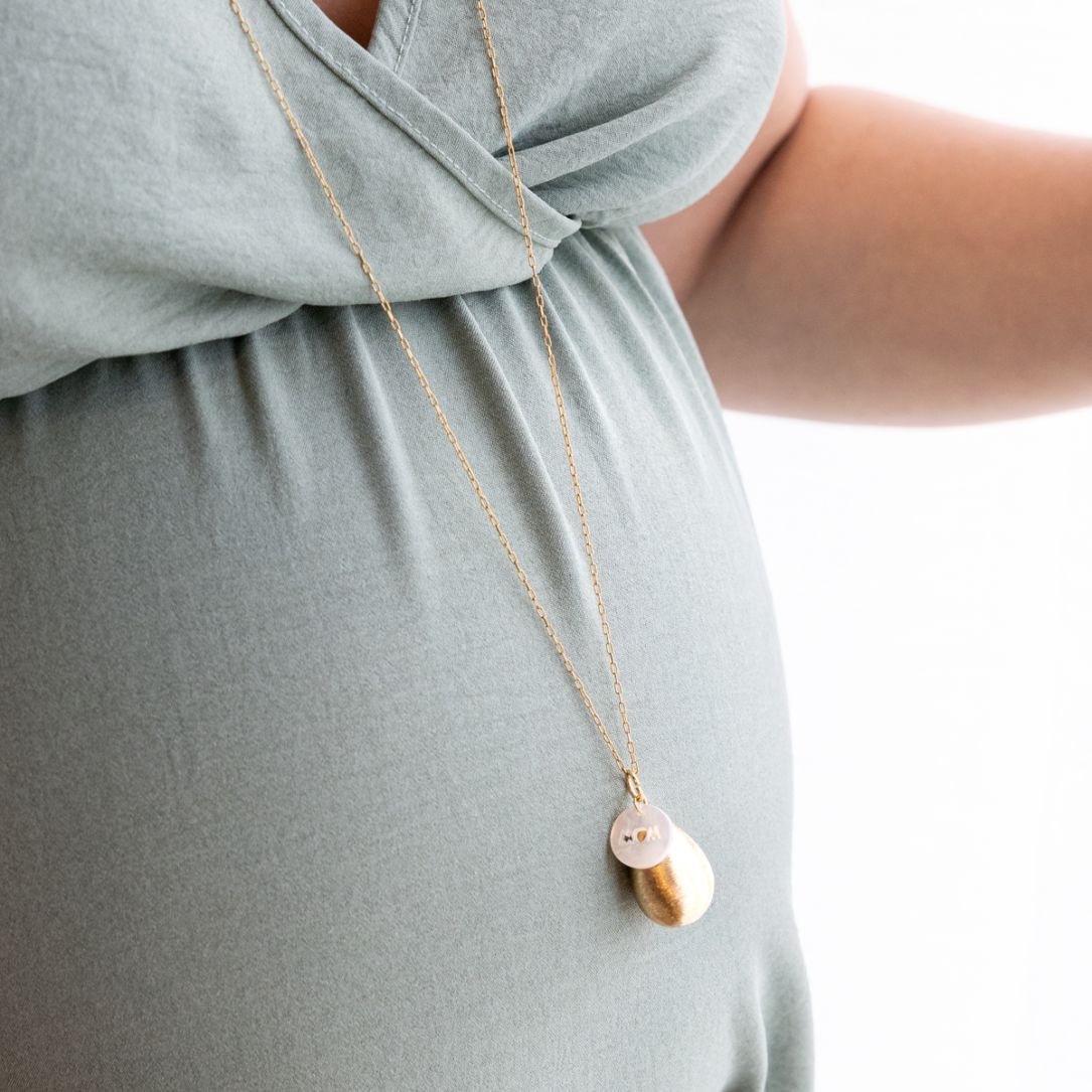 En lithothérapie, la nacre est reconnue pour ses vertus apaisantes et protectrices. Symbole de féminité et de maternité, elle agit doucement sur le chakra du plexus solaire pour dissiper les angoisses et favoriser le bien-être émotionnel. Ce lien minéral aide à harmoniser les énergies entre la mère et l'enfant, offrant une aura de sérénité durant toute la grossesse.